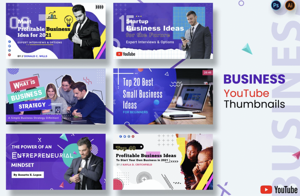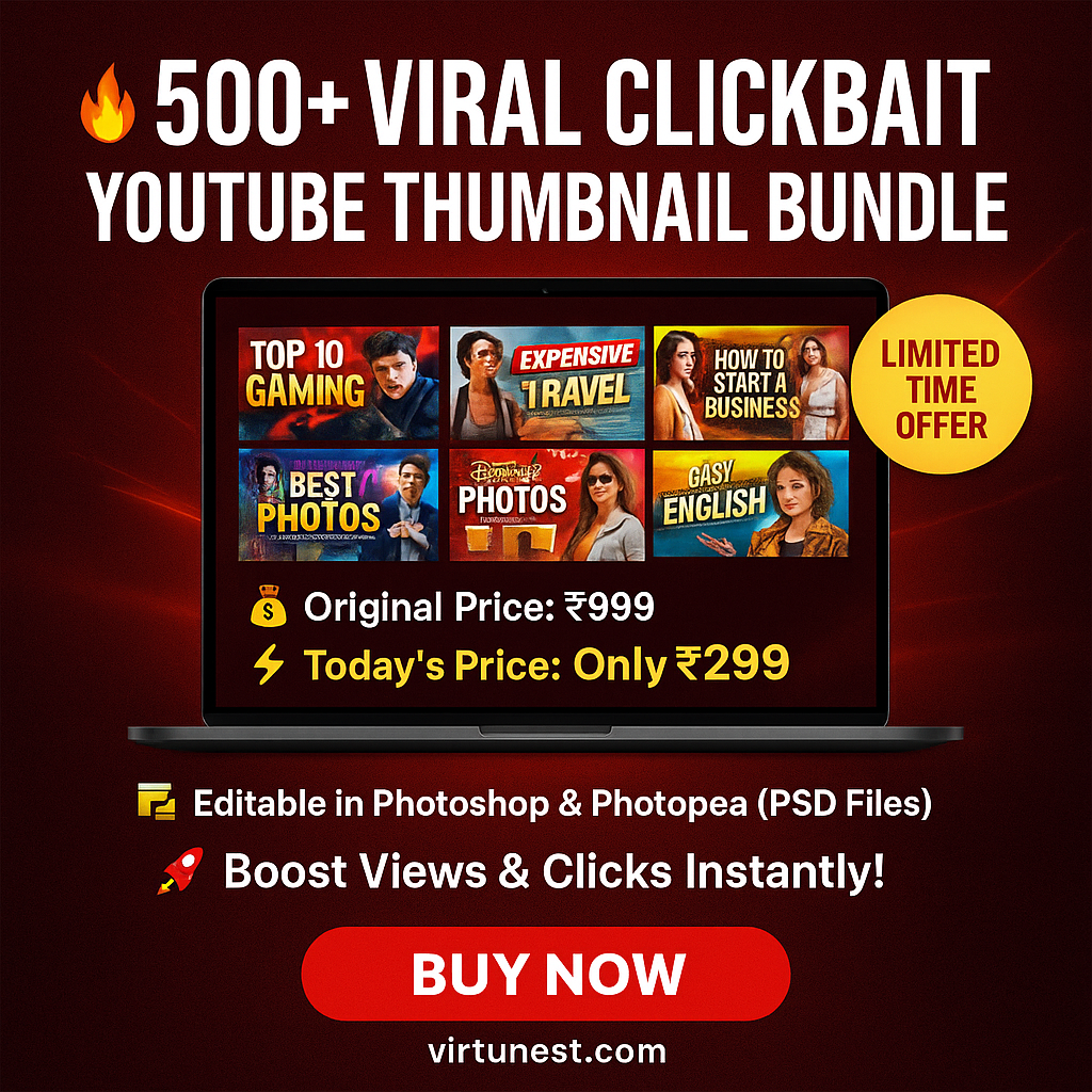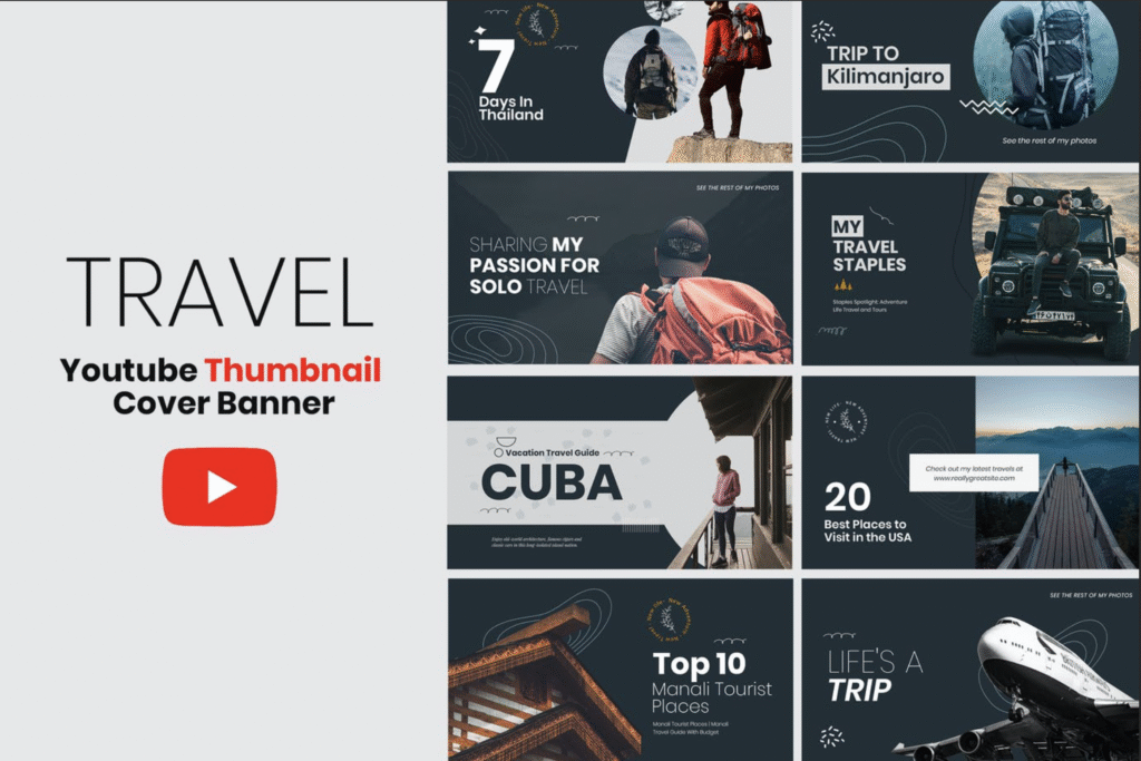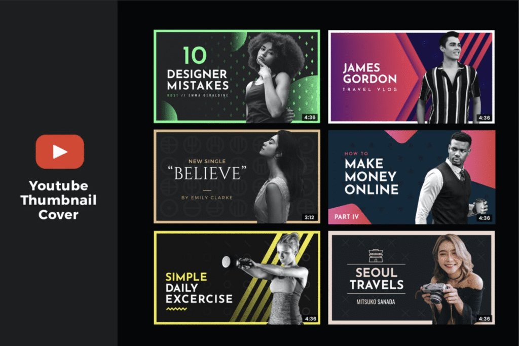 The bundle includes a collection of professionally designed thumbnail templates that you can easily edit in tools like Canva, Photoshop, or Figma. Each template is customizable — you can change the text, images, colors, and layout to match your channel’s branding and niche.